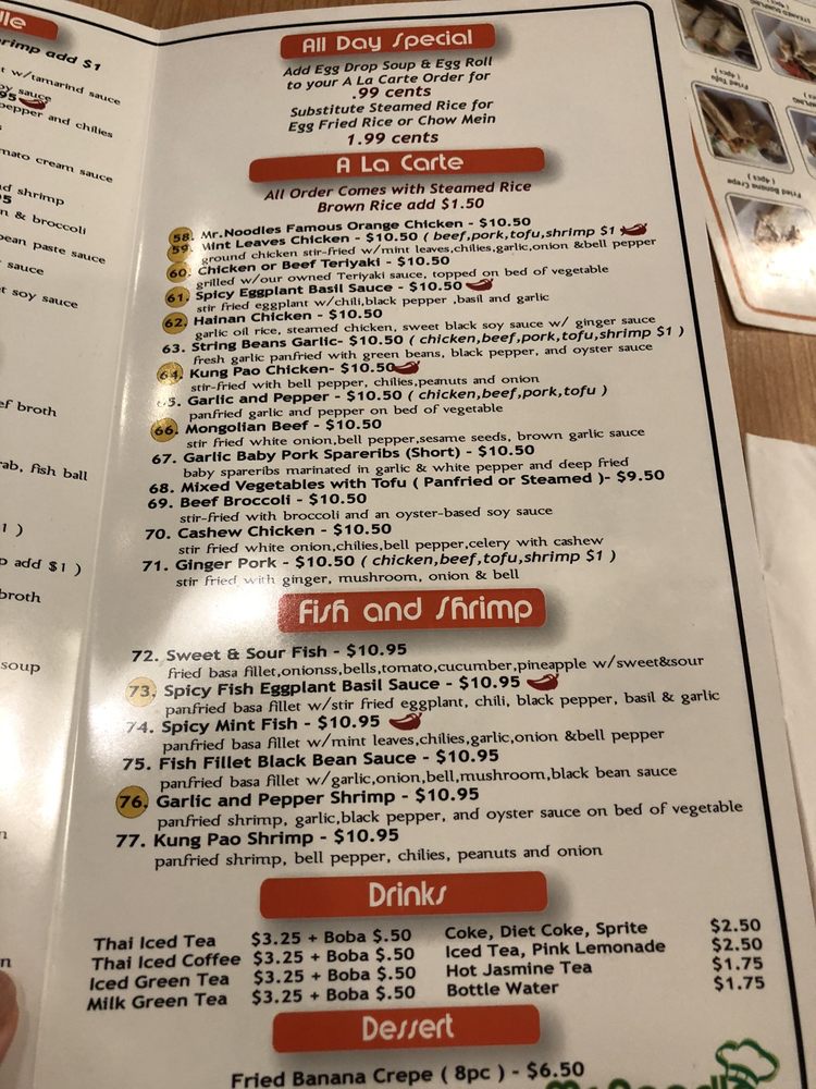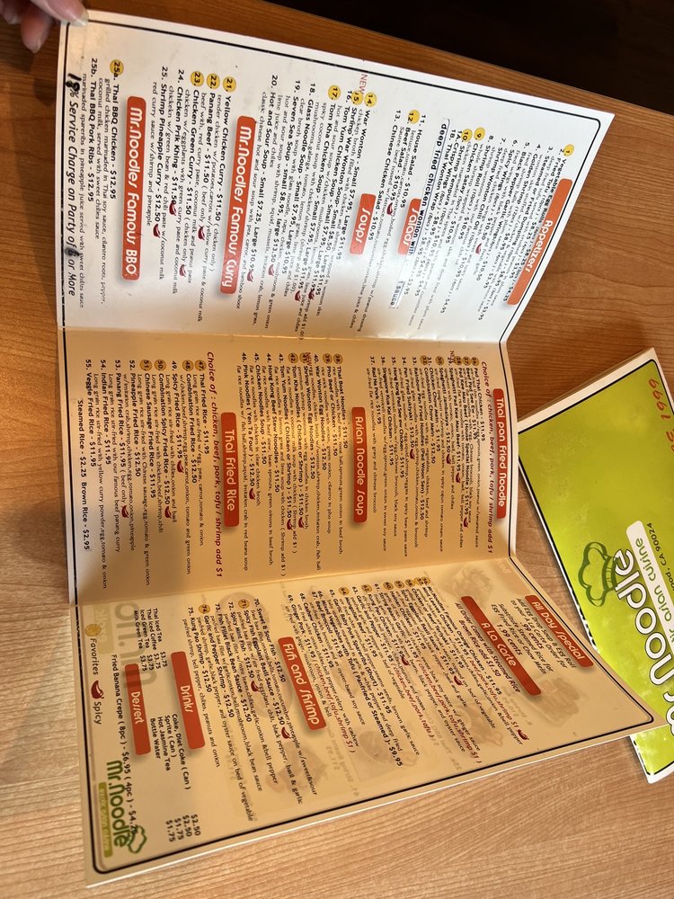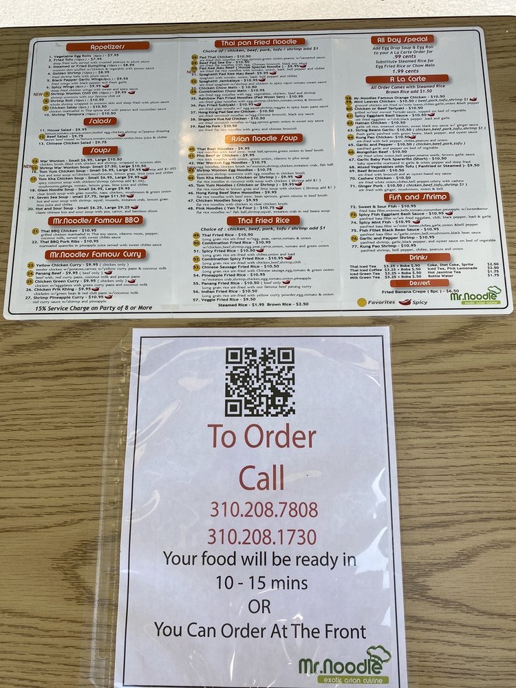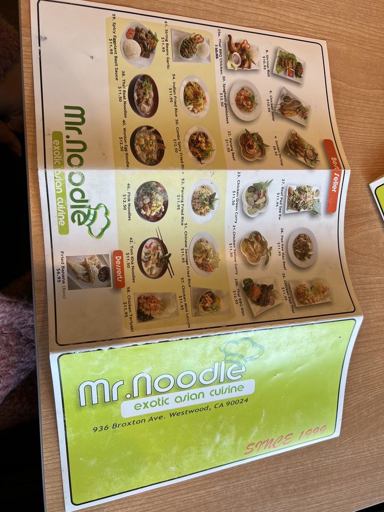 Located in Westwood, Los Angeles, Mr Noodle is an Asian Fusion restaurant that specializes in Thai noodles. Offering delivery, takeout, and reservations, this casual spot is perfect for lunch or dinner. With a menu filled with vegan and vegetarian options, there is something for everyone at Mr Noodle. Customers rave about the generous portions and delicious flavors of dishes like the Pad Thai and Rainbow Pan Fried Noodles. The Mango Sticky Rice dessert is a must-try, showcasing the traditional Thai flavors of glutinous rice, fresh mango, and coconut milk. Whether you're catching up with friends or enjoying a solo meal, Mr Noodle's relaxed vibes and quick service create a delightful dining experience. Don't forget to try their small plates like Vegetable Eggrolls and Thai Wonton Wraps for a flavorful start to your meal.